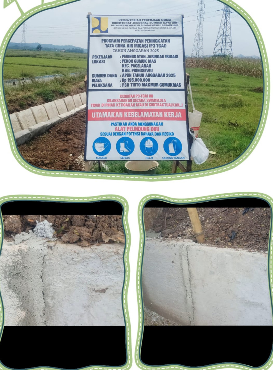 Dijumpai selaku bagian P3A Tirto Makmur Gemukmas Sony di kediamannya, untuk mempertanyakan terkait pembangunan peningkatan jarian irigasi yang menurut warga setempat tidak sesuai dengan spek pembangunan RAB atau asal jadi serta perkeja tidak menggunakan pengaman,yang saat ini masih dalam tahap pengerjaan,namun beliau tidak ditempat.(eki)